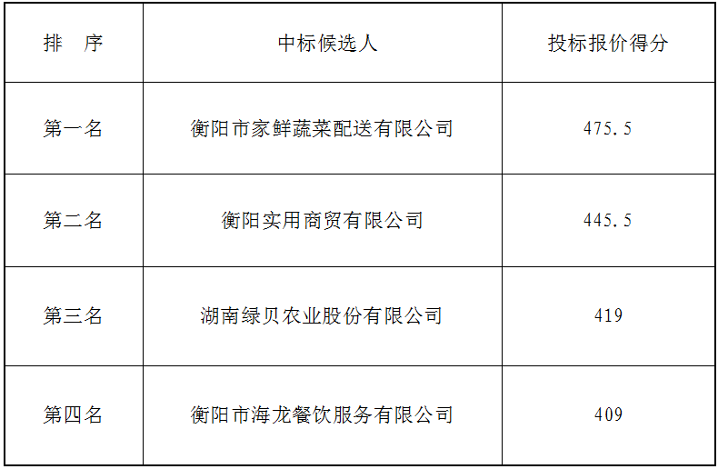 衡陽(yáng)市衡府賓館有限公司(養(yǎng)正園)食堂食材(蔬菜類)公開(kāi)比選候選人公示