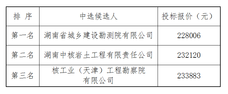 幸福河項(xiàng)目工程竣工測(cè)量單位比選于2022年8月3日上午9時(shí)00分(北京時(shí)間)進(jìn)行了比選開標(biāo)、評(píng)標(biāo)活動(dòng),評(píng)標(biāo)委員會(huì)按照比選文件規(guī)定的評(píng)標(biāo)辦法及原則進(jìn)行評(píng)定,推薦中選候選人排名如下: