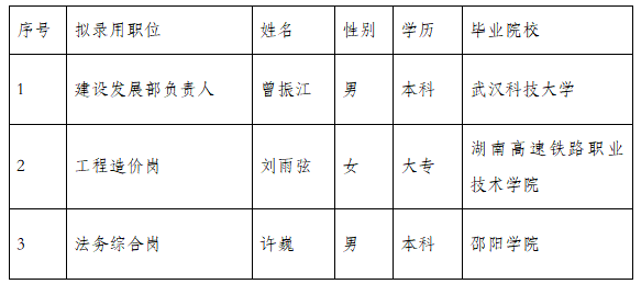 衡陽(yáng)視界科技發(fā)展有限公司 擬錄用人員公示公告