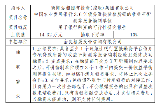 招 標(biāo) 人:衡陽弘湘國有投資(控股)集團有限公司