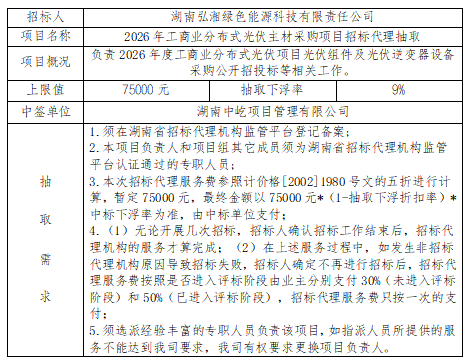 2026年工商業(yè)分布式光伏主材采購(gòu)項(xiàng)目招標(biāo)代理抽取結(jié)果公示